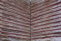 ヴッパータール近郊の小都市ゲーヴェルスベルグ市のモニュメント*。作品タイトル「Zeitschichten」は、訳せば「時層」となる。この地方特産の黄色い砂岩で一辺2mの立方体を取り出し、その塊を上下に2分した後、真ん中に同じ体積分のセメントの層を挿入する。赤白のストライプは白セメントと、砂岩に含まれている酸化鉄(赤色顔料)を交互に踏み固めて重ねて作られた。体積が倍になった直方体(高さ4m)の塊を縦にくさび(せり矢)で2分して、左右に開いた形で設置された(プランドローイング参照)。制作は、ゲーヴェルスベルグ市土木課の全面的な協力の下に行なわれた。この作品では、砂岩表面に見られる酸化鉄や石炭の縞模様と、制作日数分のストライプという自然および人為による積層された時間の相に対して、くさびにより割り開く瞬間的な時間の相を対比的に見い出すことが出来よう。