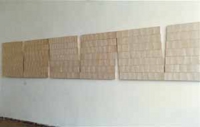学部4年次に「芸術祭」で発表した作品。 横長の薄いベニヤ板に半透明の和紙を貼った1枚を1単位として、表面に白のハッチング(雨降り描き)を絵の具が切れるまで施す。ハッチィングによって生じるグラテーションと、和紙を透かして見えるベニヤ板の木目が重なり、描かれた白い調子と背景のベニヤの色が互いに交替し合う。1単位を1日で仕上げ、1週間(7枚)ごとに少しづつずらしながらパネルにまとめ、さらにパネル7組を連続させて展示した。