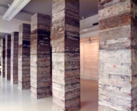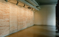 壁面にはフレスコによる平面作品、中央には7本のコンクリート列柱が展示され、画廊全体を使ったインスタレーションとなっている。コンクリート柱は、毎日一定量のセメントと赤色顔料を型枠の中に交互に流し込み、積層することによって作られている。観客は、平面において発現した時間の広がりと、立体における層の重なり(厚み)を、列柱の間を行き交うという空間体験を通じて環境として感受することになる。