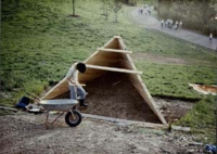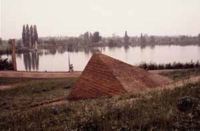 デュッセルドルフで開催されたドイツ庭園博覧会(BUGA)*の企画として行なわれた、美術アカデミーの学生たちによる野外彫刻展での参加作品で、会期中公開制作された。かつて煉瓦工場があったという丘陵地に、2か所平行に三角形に穴を掘り、その上に全体が2等辺三角形になるように掘った土を積み上げていった。毎日、煉瓦の粉末を積層させて突き固めていくことにより、掘られた地面(凹三角形)に生じる堆積層と、積み上げられた面(凸三角形)に生じる人工の層との対比が見られる。1か月にわたる公開制作の後は、三角形の先端部から崩れはじめたが、会期中は原型をよく留め、博覧会終了後も長らく作品の痕跡を残すこととなった。